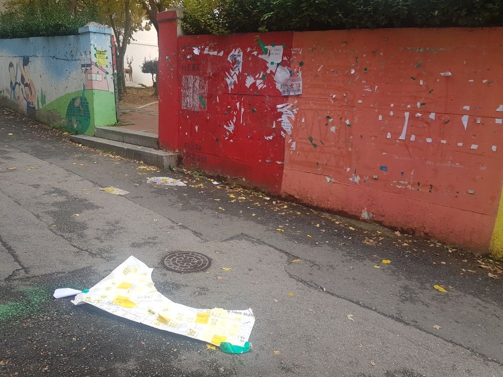 전남대 김남주 기념홀 뒤편에 게시된 현수막과 레논 월은 며칠을 버티지 못하고 훼손되었다. "누군가가 날카로운 커터 칼로 현수막을 찢어버렸다"는 목격담이 전해졌다. 이에 지난 11월 15일에 함께 '벽보를 지켰던 사람들'이 모여 찢어진 현수막과 훼손된 대자보를 회수하였으며, 이를 광주가 홍콩에 연대했고 그 표현의 자유가 도전받았다는 증거로써 전남대학교 박물관에 기증했다.