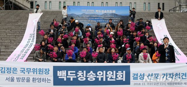 2018년 11월 7일, 세종문화회관에서 '백두칭송위원회 결성 선포 기자회견'이 열렸다. 이는 한국대학생진보연합 활동가들을 주축으로 구성된 단체였다. '백두'는 김일성, 김정일, 김정은을 '백두혈통'으로 부르는 데에서 따온 것으로 '백두 칭송'이라는 말에는 북한 지도자에 대한 찬양이 함축되어 있었다. 민주주의자라면 특정인 혹은 단체에 대한 일방적인 '칭송'이 내포하는 전체주의적 요소를 간과하기 어렵다. 그러나 이들은 그저 특정 국가의 지도자를 맹목적으로 찬양할 뿐이었다. 이것은 남북 화해 분위기에 따라 북한 지도자의 특정 부분을 높게 평가하는 것과는 비교될 수 없을 정도로 미개한 일이었다.
