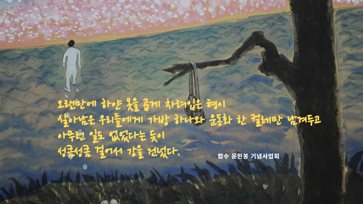 윤한봉 선생은 생전에 '합수(合水)'라는 아호를 사용했다. 합수는 어감과는 달리 '똥과 오줌이 섞인 거름'을 뜻한다. 그는 스스로를 낮추고 역사의 거름이 되는 길을 택했다. 역사에는 언제나 씨앗을 뿌리는 사람과 열매를 거두는 사람이 있다.