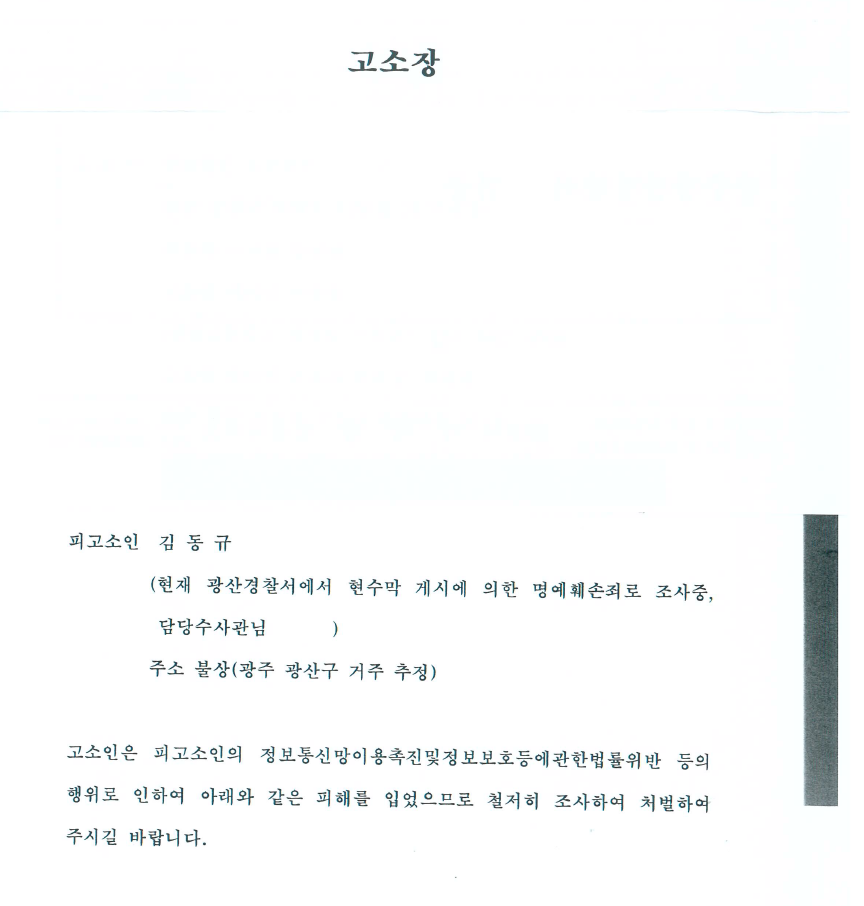 우선 고소장에 언급된 "악랄한 비난을 서슴지 않았습니다"를 살펴보자. 맞춤법이 틀렸다. "서슴지 않았습니다"가 올바른 표기법이다. 혹여나 이 글을 보게 된다면, 다음부터는 맞춤법에도 신경을 썼으면 좋겠다. 애초에 고소장에 이런 문장을 넣는 자체가 실력의 부족함이 아닐 수 없다. '법리'로 승부해야지, 어찌 '감정'으로 승부하나. 정보공개 청구 관련 법 절차에 직면한 호남대학교 총학생회 측이 의견서에 "결코 좌시할 수 없다"는 문장을 포함시킨 일화가 떠오른다. 참으로 수준 낮은 고소장에 형편없는 지적능력이다.