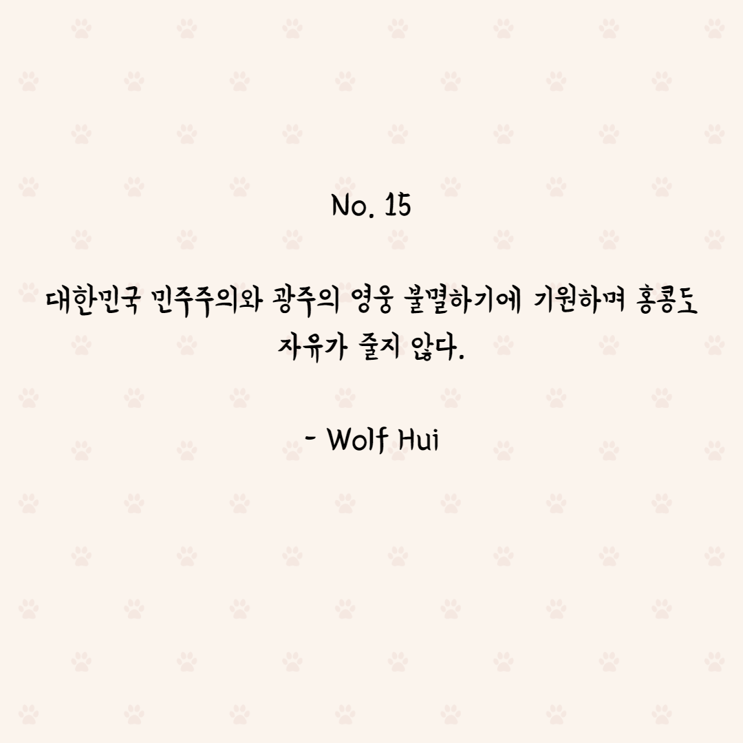 대한민국 민주주의와 광주의 영웅 불멸하기에 기원하며 홍콩도 자유가 줄지 않다.