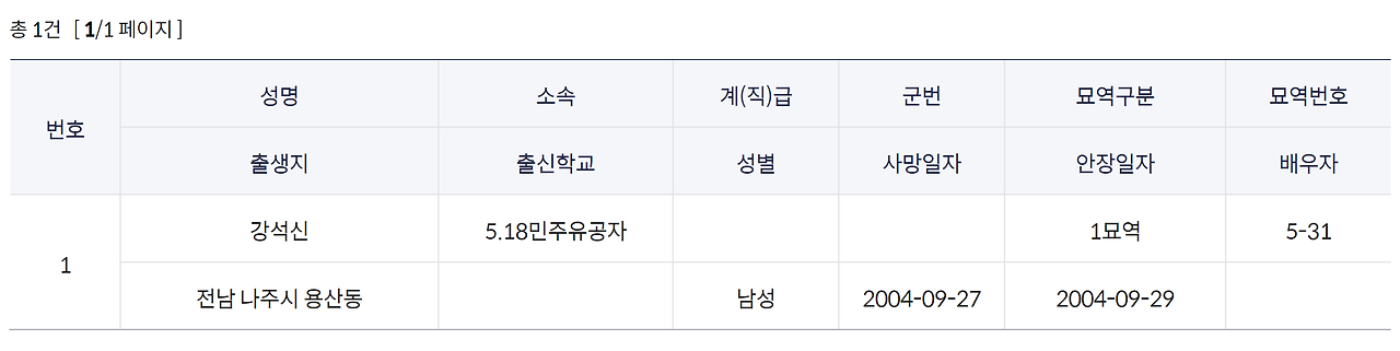 2004년, 이들 중 두 번째로 강석신씨가 사망했다. 그는 국립5.18민주묘지 5-31 묘소에 묻혔다.