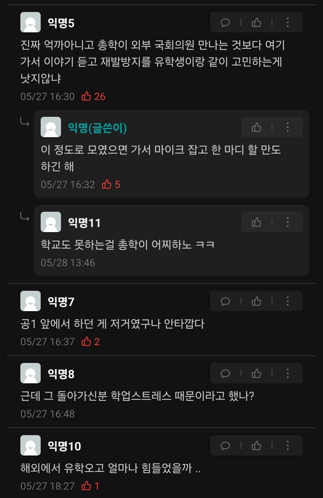 이번 청원에 참여한 한 한국인 학생은 "한국 학생에게도 때로 대학이라는 공간은 억압적이고 우울하게 느껴지곤 한다"며 "국제 학생들이 겪는 어려움은 더 클 것 같다. 대학이 국제 학생을 포함한 모두에게 안전하고 즐거운 배움과 경험을 주는 공간이 될 수 있도록 정신건강 보호와 차별 금지 관련 제도가 시급히 생겼으면 한다. 단 한 사람의 일이 아니었던 고인의 이야기가 시민들에게 알려져 인식을 바꿀 수 있길 희망한다"고 말했다.