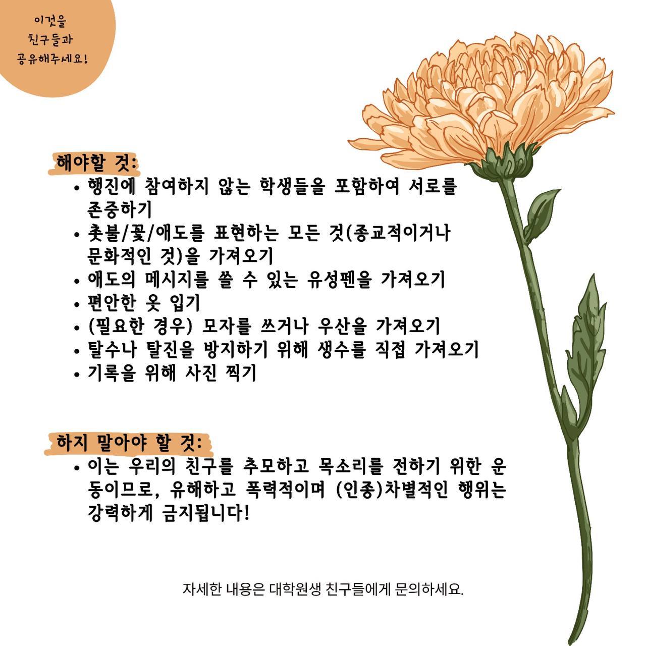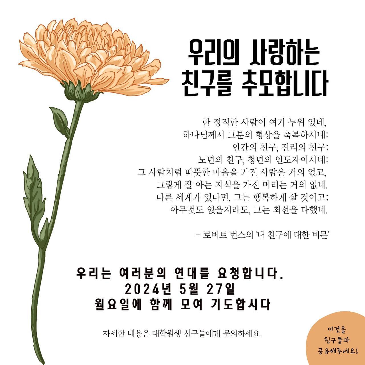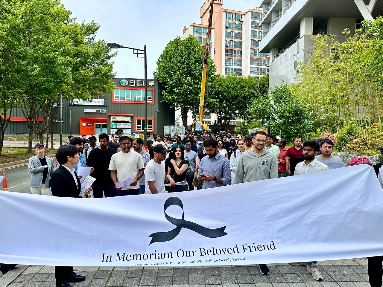 사건 직후 전남대의 유학생들이 모여 있는 커뮤니티에서 추모 집회를 열자는 의견이 나왔다. 그들이 모여 있는 카카오톡 단체방에는 720여 명이 소속돼 있었고, 이들은 곧 집회 계획을 짰다. 나는 운 좋게 이 소식을 접했다. 보통의 추모 집회는 으레 언론에게 취재요청서를 발송한 후 진행되곤 하는데, 그분들이 그 같은 절차를 잘 몰랐던 관계로 이 집회를 그렇게 진행되지 않았다. 때문에 나는 추모 집회에 제대로 참석한 유일한 언론인이 됐다. 그들은 집회에 앞서 3장 짜리 웹자보를 만들어 돌렸고, 서명 운동 링크도 만들었다.