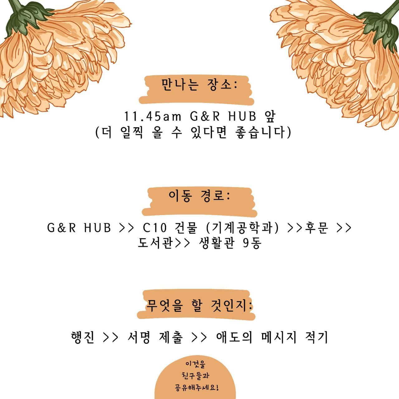 이날 집회 참석자들은 "학생들이 학생에 대한 차별, 괴롭힘, 과도한 업무 부여 및 인권침해 사건을 안전하게 신고할 수 있도록 신뢰할 수 있는 독립 업무 기관을 마련할 필요가 있다"며 "출신 국가 및 정치적 신념에 따른 차별을 방지해야 한다. 학생들에게 과도한 스트레스와 가혹한 대우를 가하는 교수에 대한 조치가 필요하며, 그들이 다양한 배경, 업무 환경, 문화적 맥락을 지닌 학생들과 함께 일할 수 있는 역량을 갖출 수 있도록 해야 한다"고 했다.