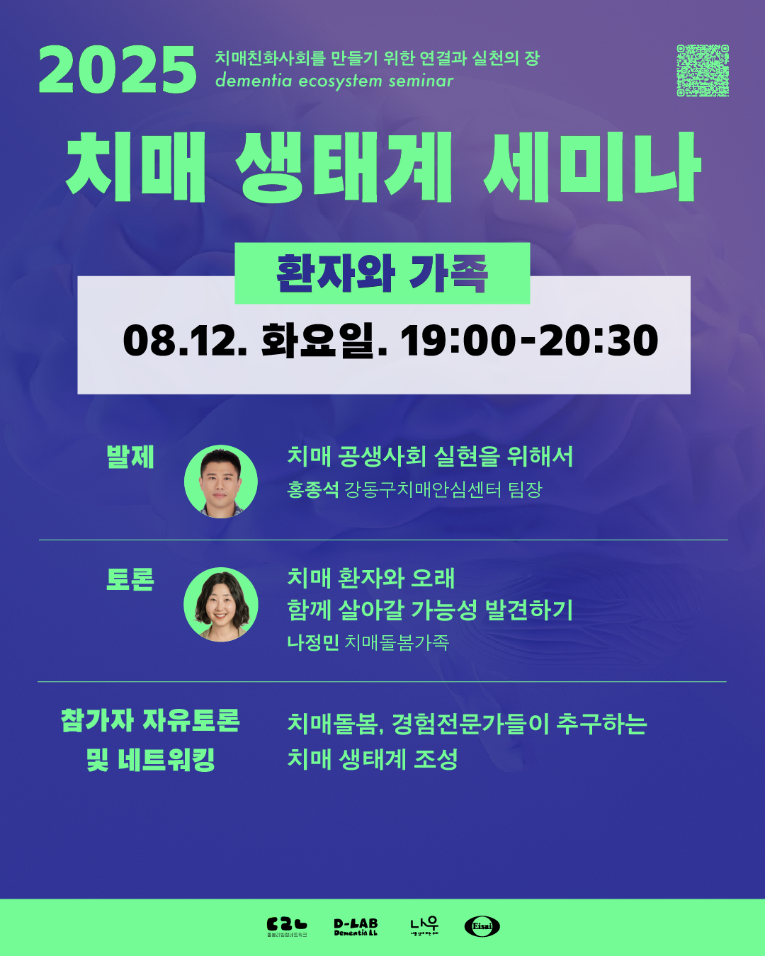 2025년 8월 12일, 글로벌 제약기업 '한국에자이'가 주최하고 사람을 통한 문화디자인을 지향하는 '내 마음은 콩밭 협동조합'이 주관한 '치매 생태계 세미나' 2회 차가 온라인 공간 줌(Zoom)에서 열렸다. 이번 세미나는 치매 친화적 사회 환경 조성을 위한 실천적 방안을 모색하기 위해 마련됐으며, 지난 19일까지 총 3회에 걸쳐 진행됐다. 사전 등록한 시민은 누구나 줌을 통해 참여할 수 있었다.
