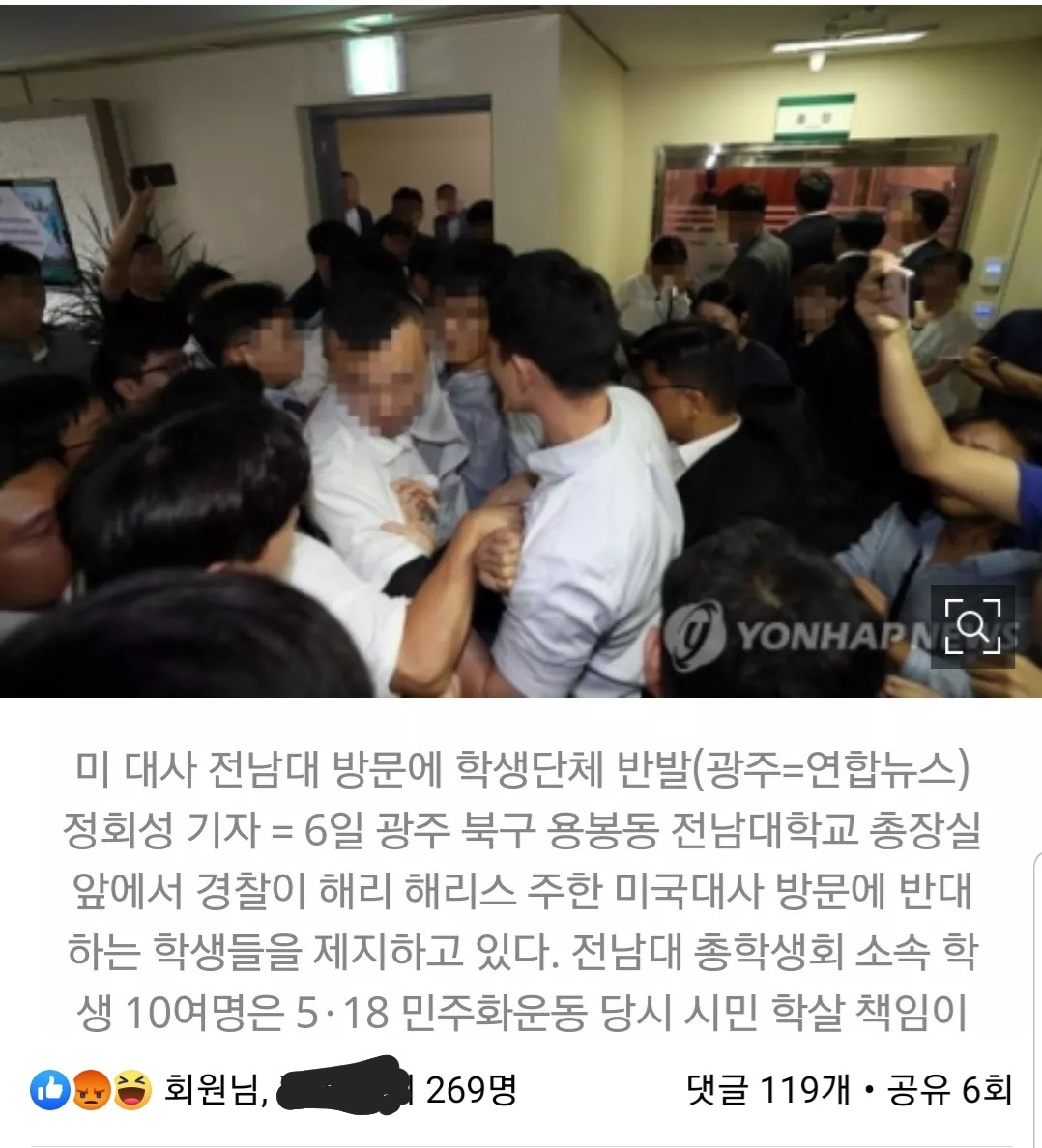2018년 9월 6일, 해리 해리스 신임 주한미대사가 전남대학교를 방문했다. 그는 전남대 총장을 만난 후 5·18 묘역을 참배할 예정이었다. 그러나 주한미대사가 전남대에 왔다는 소식이 전해지자, 전·현직 전남대 총학생회 간부들이 모여있는 광주전남대학생연합이 총장실 점거를 시도했다. 당연히 물리적인 충돌이 발생했다. 이 자리에는 최도형 총학생회장도 함께 있었다. 전대총학 페이스북에는 총학에서 주도하는 시위인 것처럼 게시글도 올라왔다. 이후 미대사의 일정으로 학생들과의 간담회가 예정되어 있었지만, 이들은 간담회장에서 마이크를 잡고 정확히 논리를 전달하는 현명한 방식을 선택하지 않았다. 이들은 정세를 고려할 때, 전략적으로 가장 어리석은 방식을 선택했다.