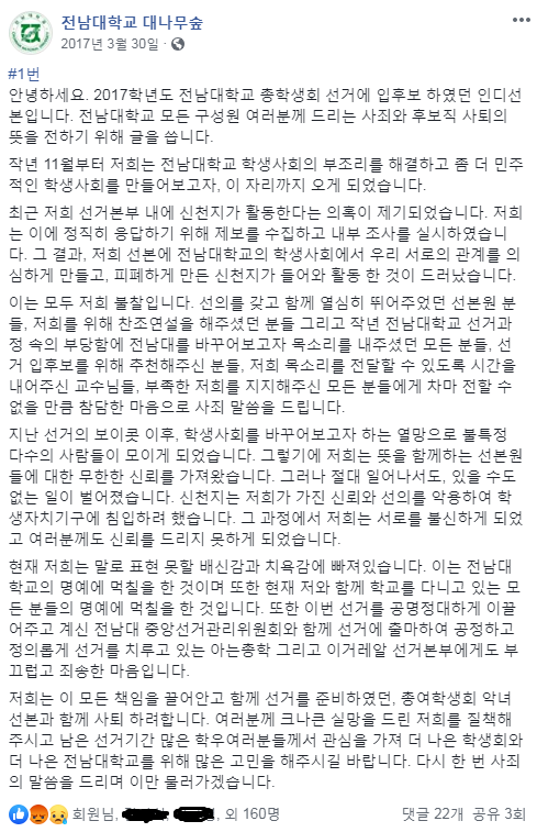 17. 전남대 총학생회, 차떼기 사건의 파장과 선거 무산 (2016)