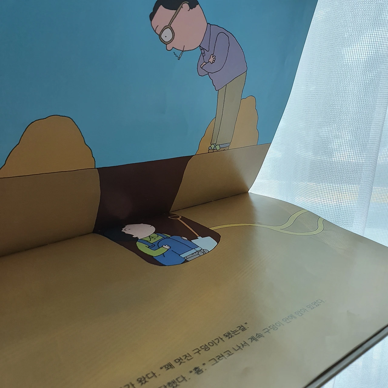 이 구덩이라는 그림책은 다양한 시각이 가능하다. 그림책 그대로 아이 시점에서도 해석할 수 있고 내가 처음 그림책을 본 것 처럼 내 인생의 구덩이에 대한 해석도 가능하다. 혼자 이 그림책을 봤다면 인생의 구덩이에 대한 부분만 생각했을텐데 마침 11살 딸이 이 그림책을 보고난후 감상문을 써서 보여주면서 또 다른 시선의 해석이 가능해졌다.