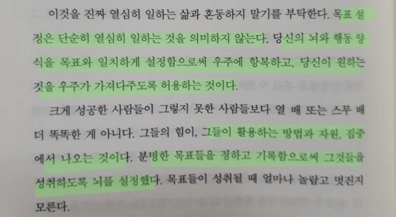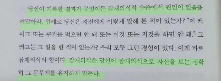 어제 읽고 쓰기에서도 말했지만 이 책에서도 무의식 내지 잠재의식으로 표현해서 말하고 있습니다. 그만큼 우리는 의식이 아닌 무의식 또는 잠재의식에 묶여 산다고 해도 과언이 아닐듯 합니다. 그만큼 사람은 의식의 존재라는 반증이기도 하지 않을까 싶습니다. 그 의식의 영역에 대해 배워 나간다면 평소 이루지 못한 것들을 성공에 이르게 하는 결과를 가져오지 않을까요? 그런 의미에서 저는 수많은 책을 통해 제 의식을 조금씩 움직이며 성장하고 있습니다. 무의식에 사로 잡혀 스스로를 가로 막는지도 모르고 살았던 시절이 있었습니다. 제가 읽어나간 수많은 책과 문장들은 제가 의도적으로 의식을 변환하기 위해 애쓰지 않았음에도 제 마음에 새겨지고 제 마음을 관통한 여러 문장들을 통해 저를 새로운 인간으로 탈바꿈시켜 놓기도 했습니다. 그런 의미에서 도무지 변화가 생기지 않고 자신의 굴레에 갇히는 분이 계시다면 적극적으로 책을 파보시길 권해봅니다.