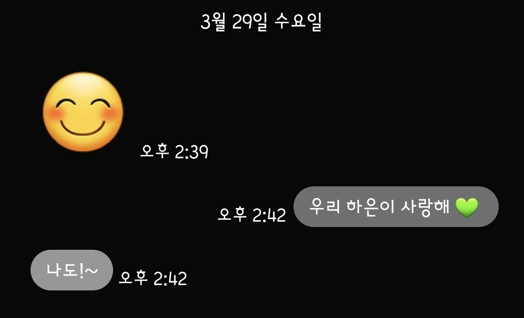 최대한 아이를 이해하면서도 아이의 말이 내 기분이 되지 않도록 하면서 아이와 급하게 마무리를 짓고 출근길을 나서는데 아이에게 문자로 이모티콘이 날아왔다.