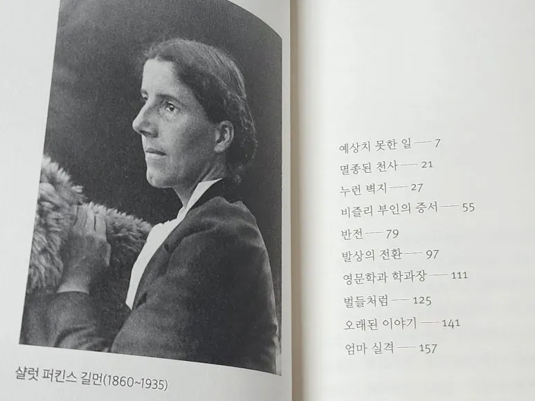1860년에 태어난 길먼 작가의 비상함도 빼놓을 수 없습니다. 지금 읽어도 전혀 손색이 없을 만큼의 내용과 서사는 여성의 삶이 그 시절과 다르지 않기 때문일까요? 여전히 여성문제로 잔재함일까요? 비교적 여성이 살기 편한 구조와 환경이 되어가고는 있지만 여전히 여성으로써 짊어지게 되는 짐이 있는 건 분명한 사실입니다.
