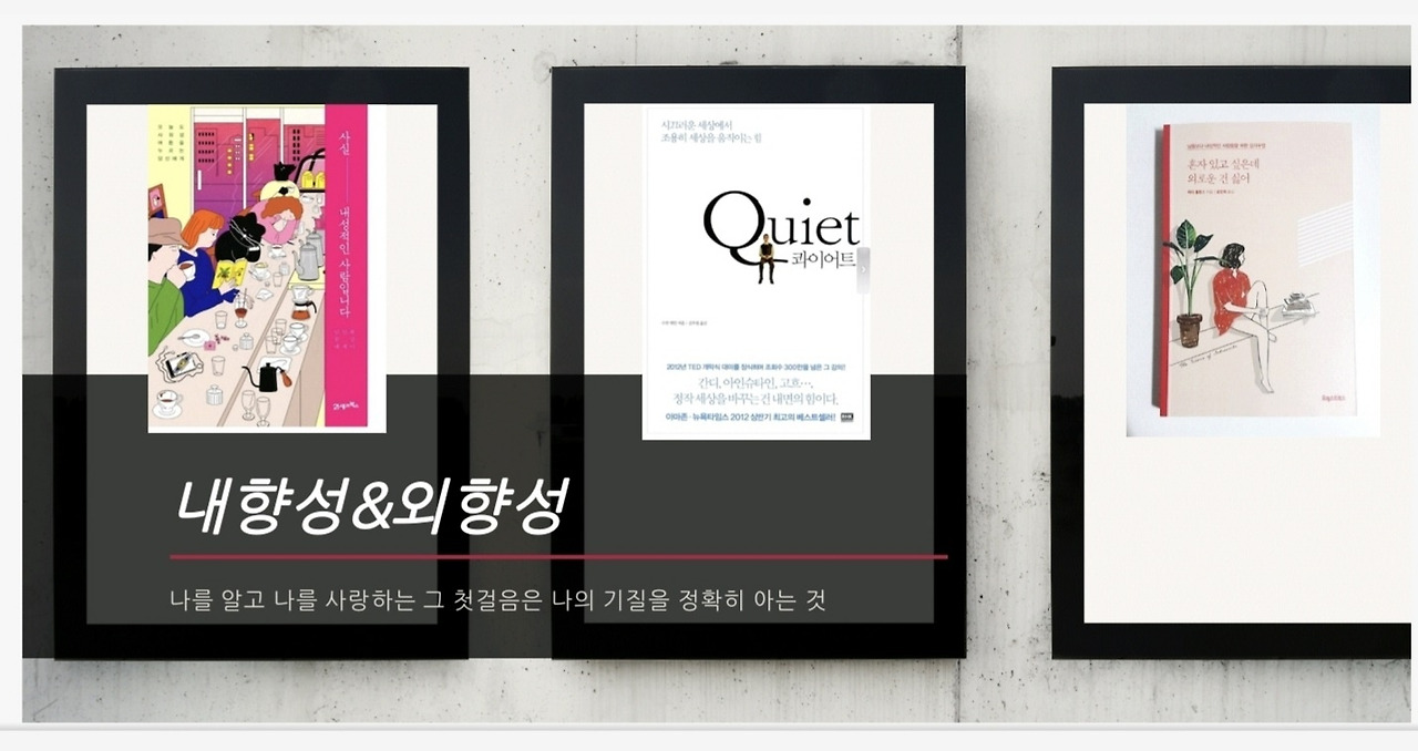 그러다 나의 외향성을 20대 후반에 되찾게 되면서 지금까지 지속하고 있고 그때까지 지속하게 된 내향성은 나를 성장하게 하는 촉매제 역할로 지금까지 긍정효과를 주고 있다. 환경적으로 아이가 셋이 되면서 내외향성이 충돌하며 우울하고 무력하게 지낸 시간도 있다. 내향인에게 주어진 또는 겪는 환경은 성향에 영향을 미칠 수 밖에 없다. 그 환경에 휩싸이느냐, 그 환경을 개선하느냐에 따라 내향인이 가지고 있는 잠재력의 여부가 달라진다.