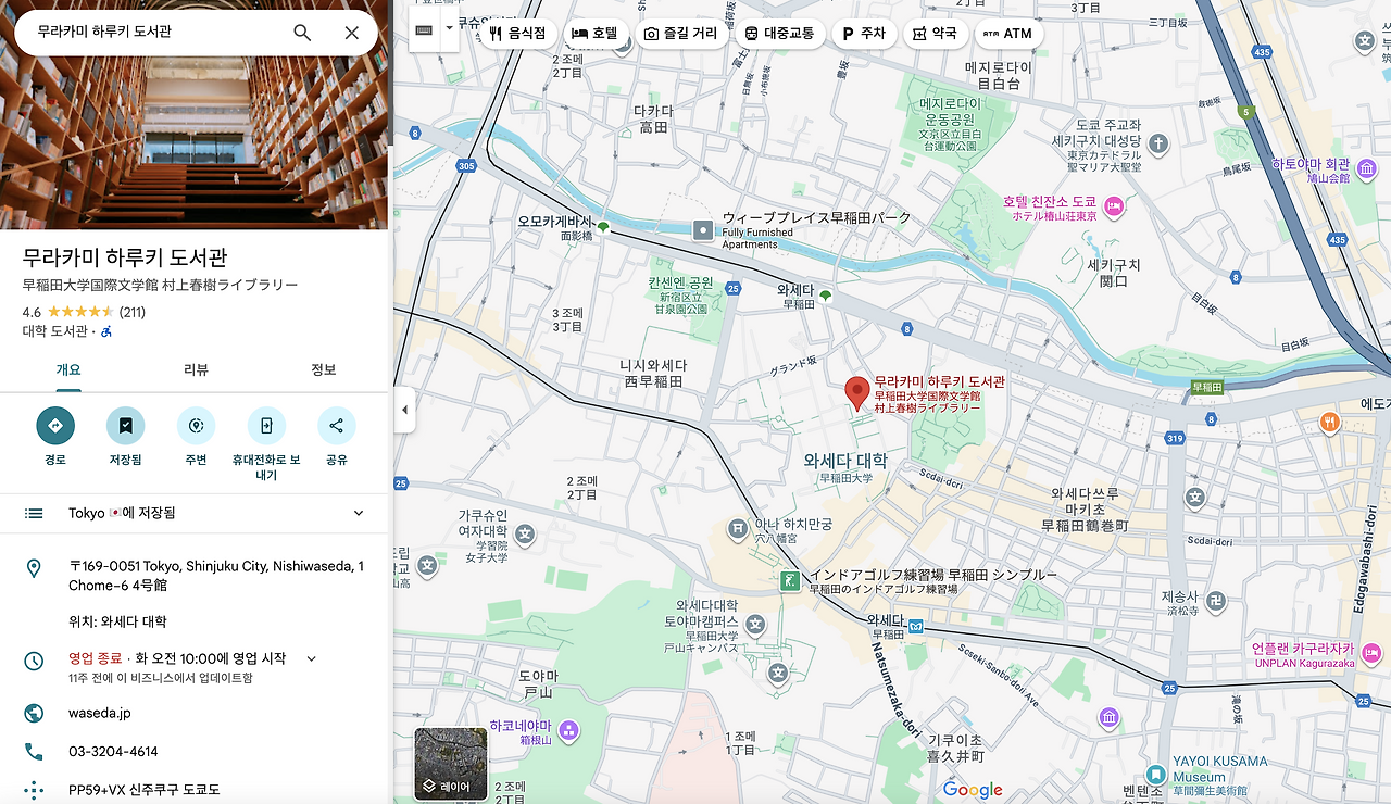 아직 한 달 정도의 시간이 있으니, 만약 무라카미 하루키의 팬으로서 도쿄에 오게 된다면 꼭 한번 와세다 대학교와 이 도서관을 방문해 보길 바란다.