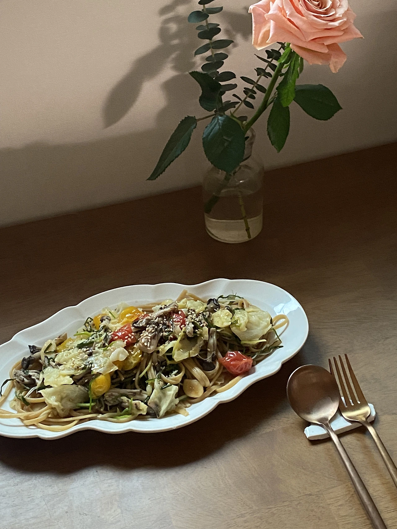 먼저, 직장 생활을 하던 시절을 떠올려 봤어요. 저는 꽤나 혼자 잘 놀던 사람이었거든요. 아무리 사람을 좋아한다 한들 주말만큼은 홀로 있기를 자처했습니다. 좋아하는 디저트를 파는 비건 카페에 가서 당 충전을 하며 글 한 편의 초고를 쓰기도 하고, 날이 좋은 날 캔 맥주 하나를 사 들고 한강 둔치에 앉아 책을 읽기도 하고, 계절에 맞는 꽃을 사 와 식탁을 꾸미고 구태여 손이 많이 가는 음식을 해서 스스로 대접해 주면서 말이에요. 지금은 단지 혼자 지내는 시간이 주 일상이 되어 혼자 보내는 시간의 특별하게 보내던 마음가짐을 놓친 것일 뿐이더라고요.