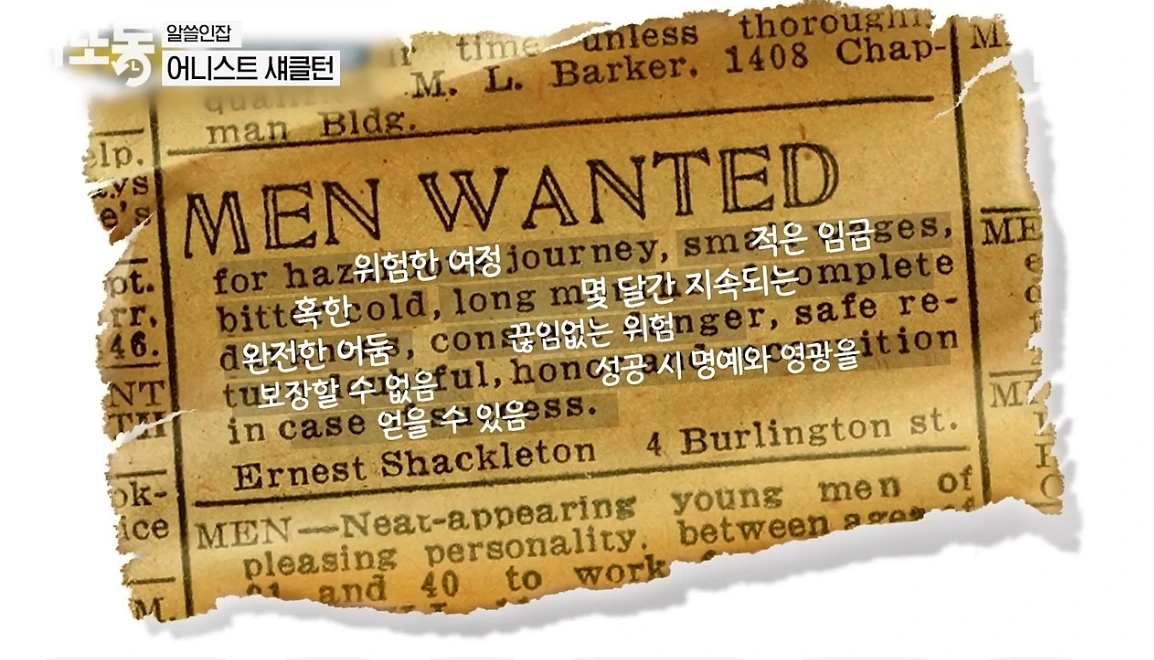 남극에 도착해 보니 노르웨이 아문센이 이미 다녀간 이후였다. 그래서 남극 횡단으로 목표를 바꾸고 탐험을 함께할 대원을 공고를 낸다.