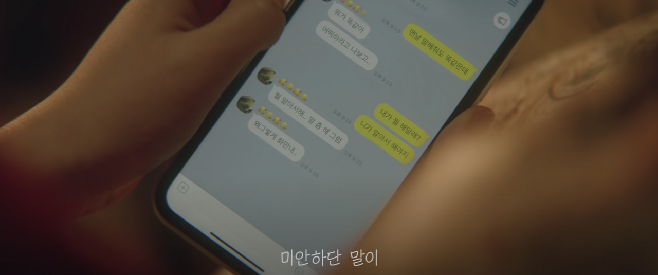 매번 싸우고, 잘 마무리되지 않는 연인. TV에 나오는 인물들은 미안하단 말을 그리도 쉽게 하는데, 우리는 미안하다는 말이 그렇게 힘들까. 내가 미안하다는 말 한마디 대신,