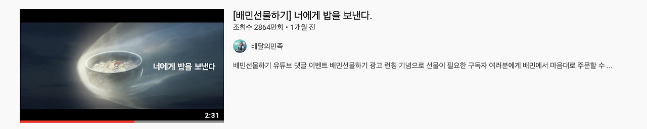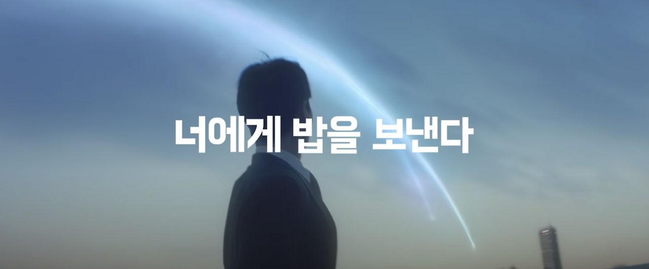 이런 생각을 하다 보니, 한 기업의 광고를 마주한 경험이 떠올랐다. '소울'을 보고 인생을 다시 살게 되었다는 친구와 함께 전율하고 싶어 늦게나마 찾은 영화관이었다. 평소에는 광고 시간을 피해서 상영관에 들어가는데, 2년 가까운 시간 동안 오지 못한 탓에 시간 감각을 잃었나 보다. 너무 일찍 도착해버린 것이었다. 하릴없이 스크린을 보고 있는데, 눈길을 끄는 광고가 있었다. '너에게 밥을 보낸다.'라는 제목의 영상이었다. 제목까지 기억하도록 했으니, 광고는 성공적이었다. 조회수도 광고의 성공을 증언해주고 있다.