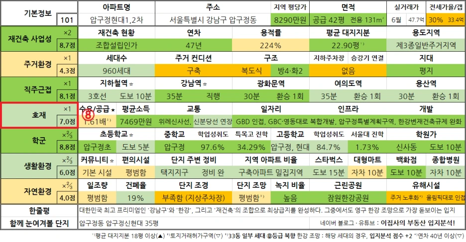 지금까지 입지분석의 열한 가지 요소와 입지분석을 할 때 이를 고려해야 하는 이유에 대해 자세히 설명해 드렸습니다. 입지분석의 열한 가지 요소는 제가 지난 수년 간 수백 개의 아파트 단지들을 분석하며 아파트 가격에 영향을 미친다고 판단한 요소들을 집대성한 것이며, 이를 한 눈에 파악할 수 있도록 시각화한 결과물이 바로 입지분석 TOOL이라고 할 수 있겠습니다. TOOL을 적용한 가격별 추천 아파트가 제 블로그에 정리되어 있으니, 관심 있는 분들은 이를 확인해 주시면 감사하겠습니다.