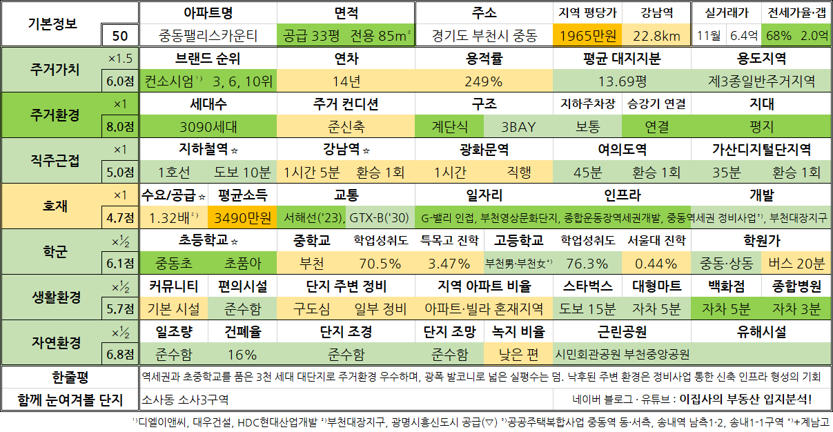 - 필자의 주관적인 판단이 개입된 만큼 입지 분석의 보조 지표로만 활용하시기 바랍니다.