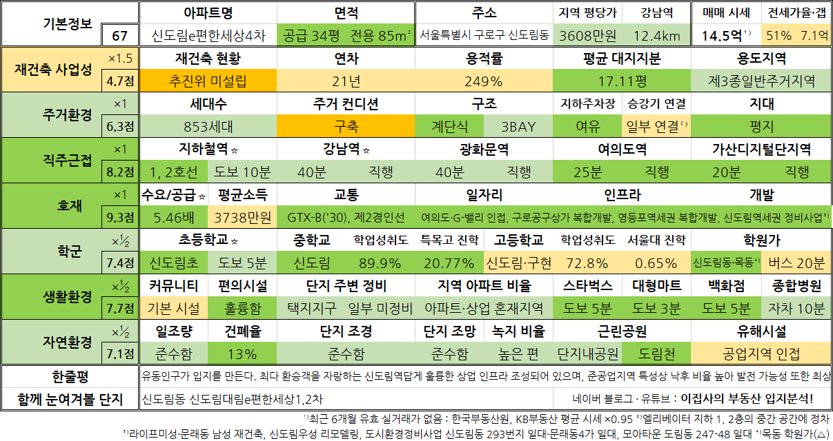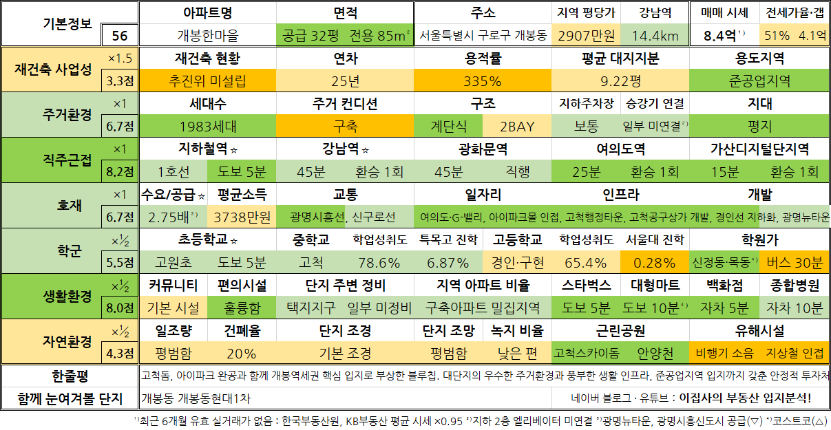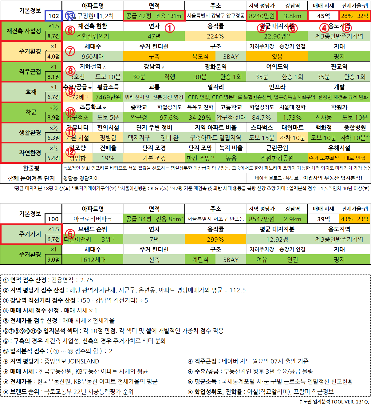 - 필자의 주관적인 판단이 개입된 만큼 입지 분석의 보조 지표로만 활용하시기 바랍니다.