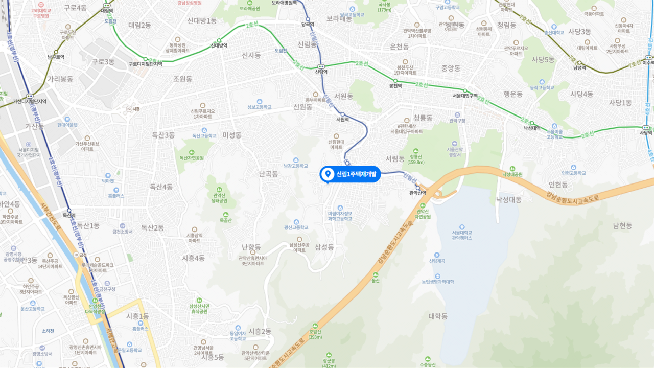 - 메이저 건설사들의 시공능력을 바탕으로, 관악산과 수변공원을 품은 4개 테마의 리조트형 대단지로 거듭날 신림1구역. 신통기획 시범 1호로 빠른 사업 추진 기대