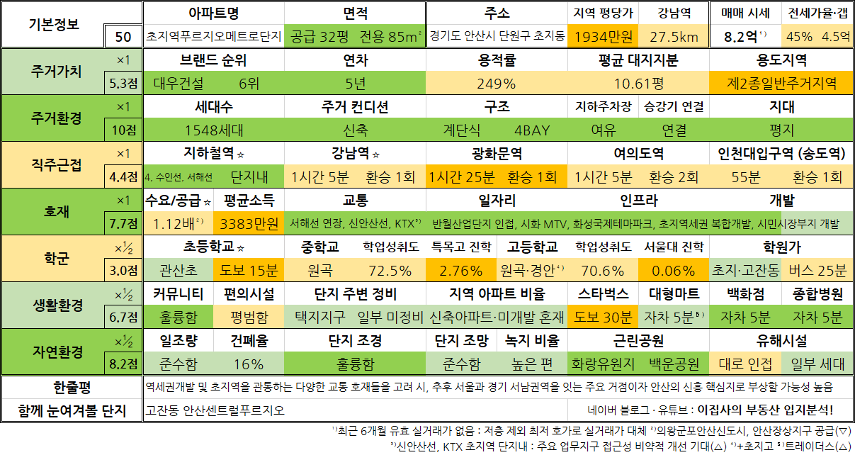 - 역세권개발 및 초지역을 관통하는 다양한 교통 호재들을 고려 시, 추후 서울과 경기 서남권역을 잇는 주요 거점이자 안산의 신흥 핵심지로 부상할 가능성 높음