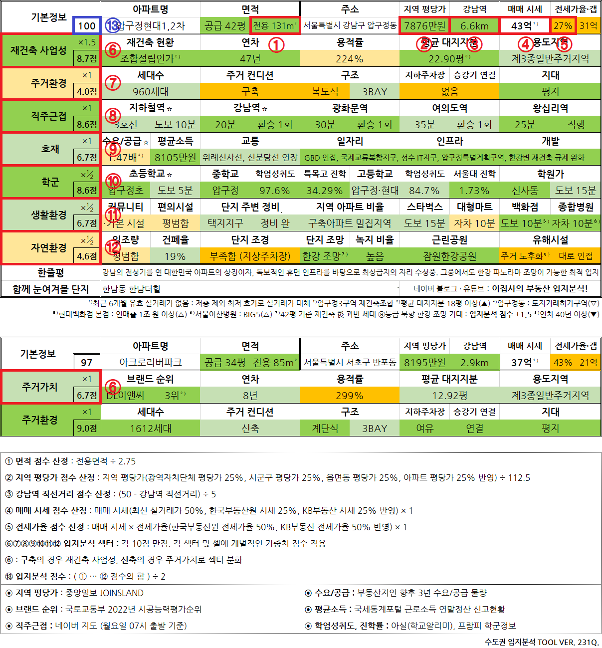 - 필자의 주관적인 판단이 개입된 만큼 입지분석의 보조 지표로만 활용하시기 바랍니다.