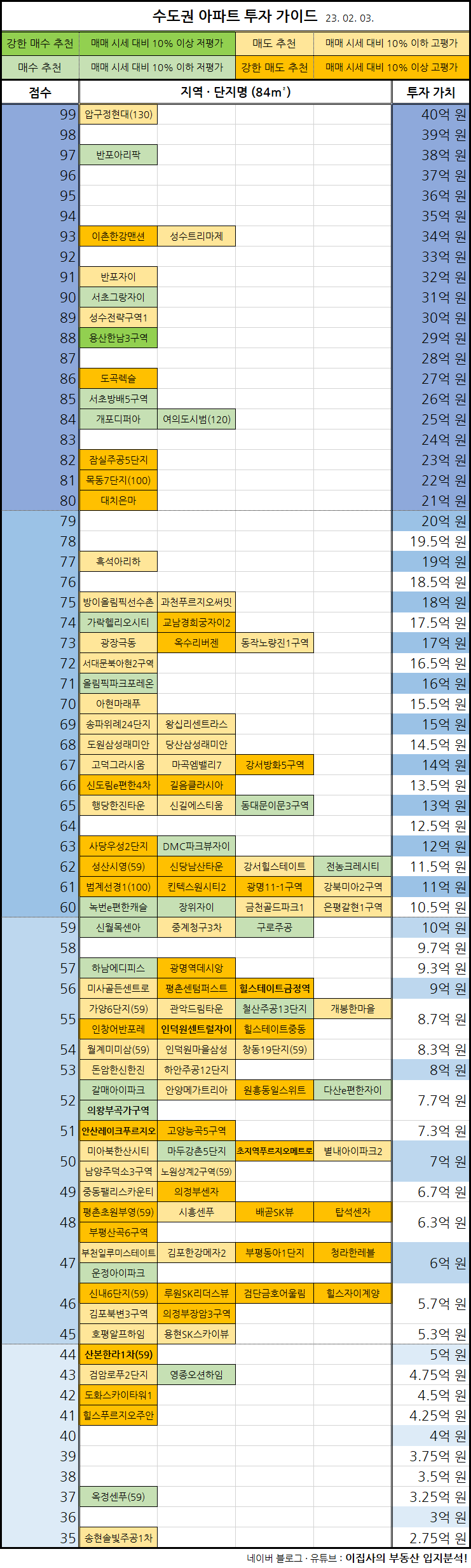 - 현재까지 누적된 입지분석 데이터를 바탕으로 수도권 아파트의 투자 가치를 산정했습니다.