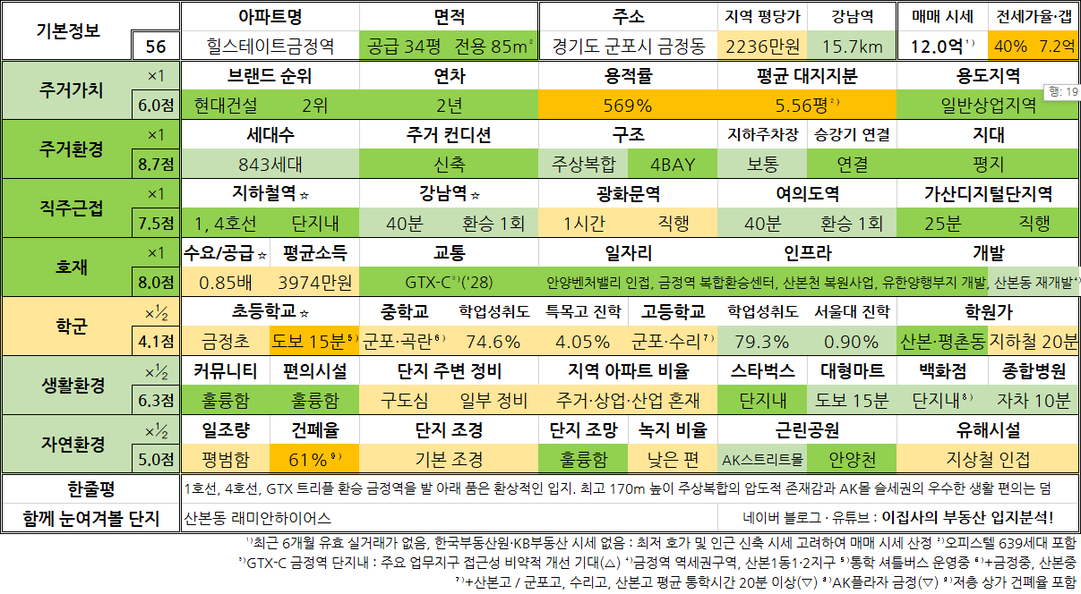 1. 경기도 군포시 금정동 힐스테이트금정역 34평