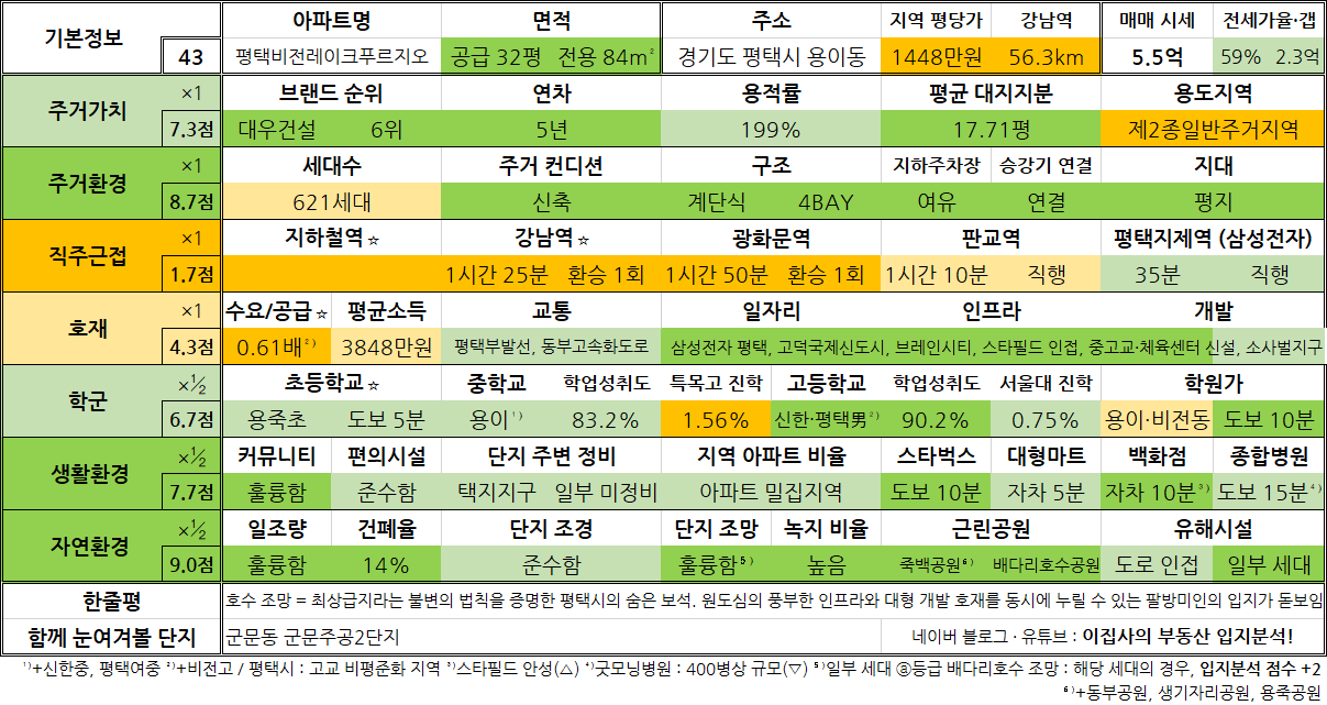 - 필자의 주관적인 판단이 개입된 만큼 입지분석의 보조 지표로만 활용하시기 바랍니다.