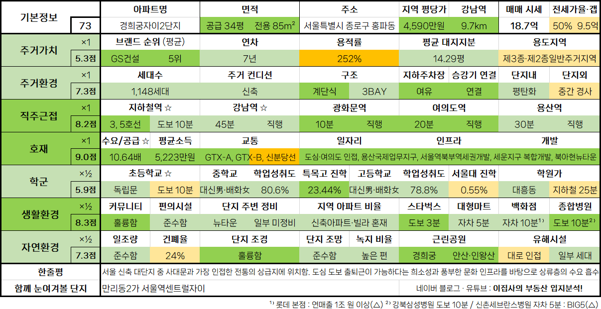 - 서울 신축 대단지 중 사대문과 가장 인접한 전통의 상급지에 위치함. 도심 도보 출퇴근이 가능하다는 희소성과 풍부한 문화 인프라를 바탕으로 상류층의 수요 흡수