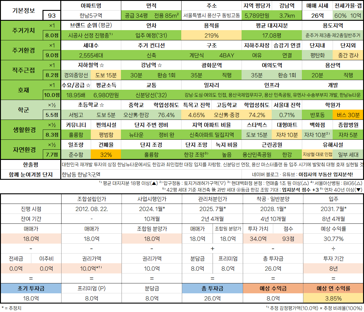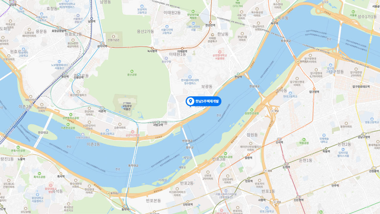 - 대한민국 재개발 투자의 상징 한남뉴타운에서도 한강과 최인접한 대장 입지를 자랑함. 신분당선 연장, 용산 마스터플랜 등 입주 시기에 발맞춰 대형 호재 실현될 것