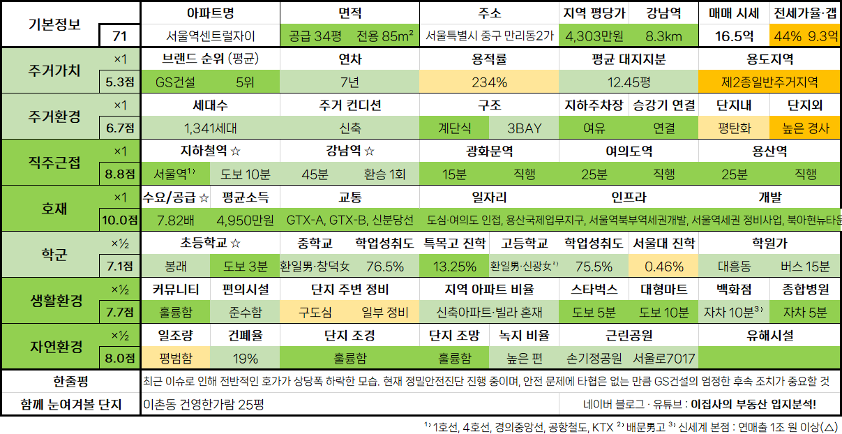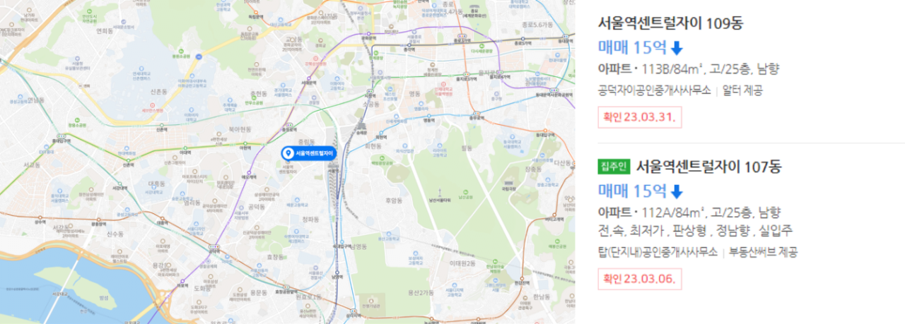 1. 서울특별시 중구 만리동2가 서울역센트럴자이 34평