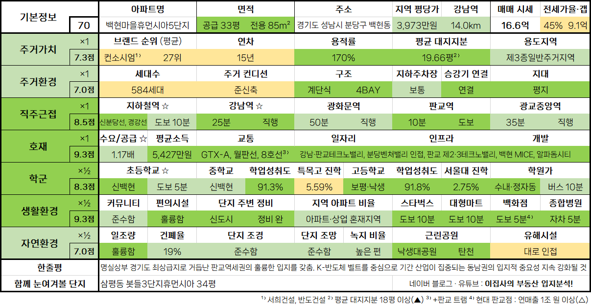 - 現 국내 아파트 시총 1위의 압도적인 존재감. 규모의 경제를 바탕으로 형성된 최적의 주거 인프라, 영동대로 직행 위신선 호재까지 갖춘 훌륭한 실거주 겸 투자처
