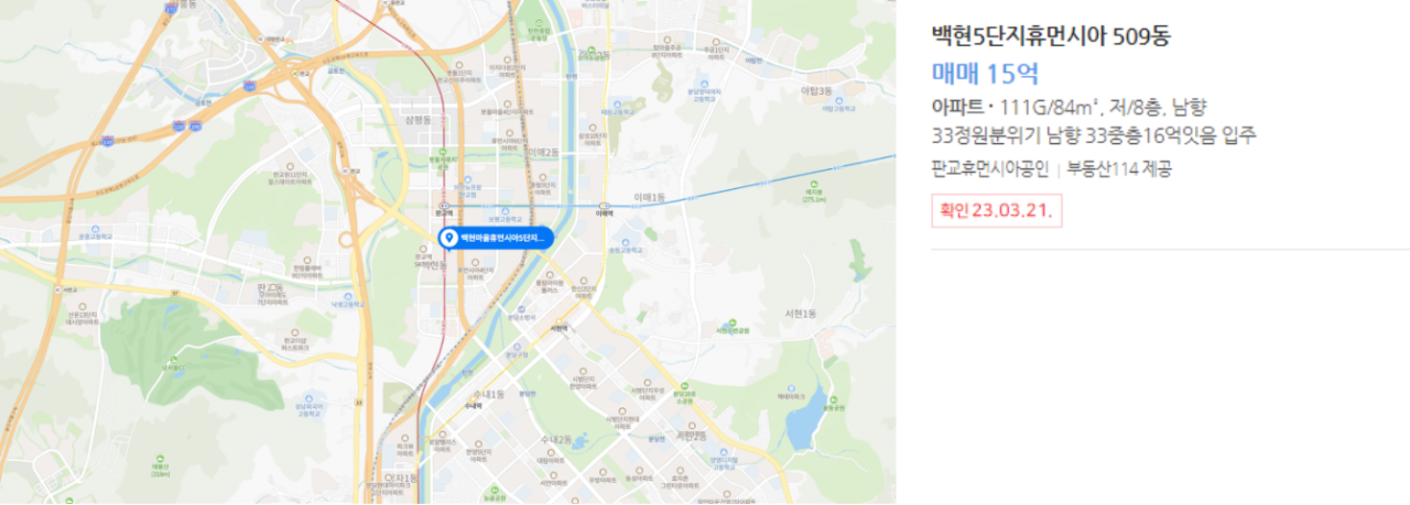 - 함께 눈여겨볼 단지 : 삼평동 봇들3단지휴먼시아 34평