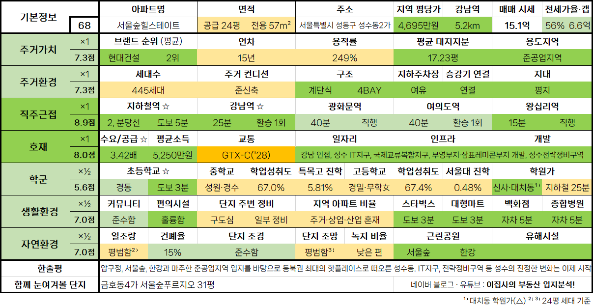 - 함께 눈여겨볼 단지 : 금호동4가 서울숲푸르지오 31평