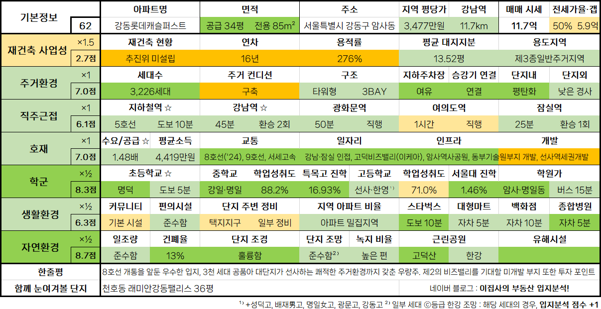 7. 서울특별시 강동구 암사동 강동롯데캐슬퍼스트 34평
