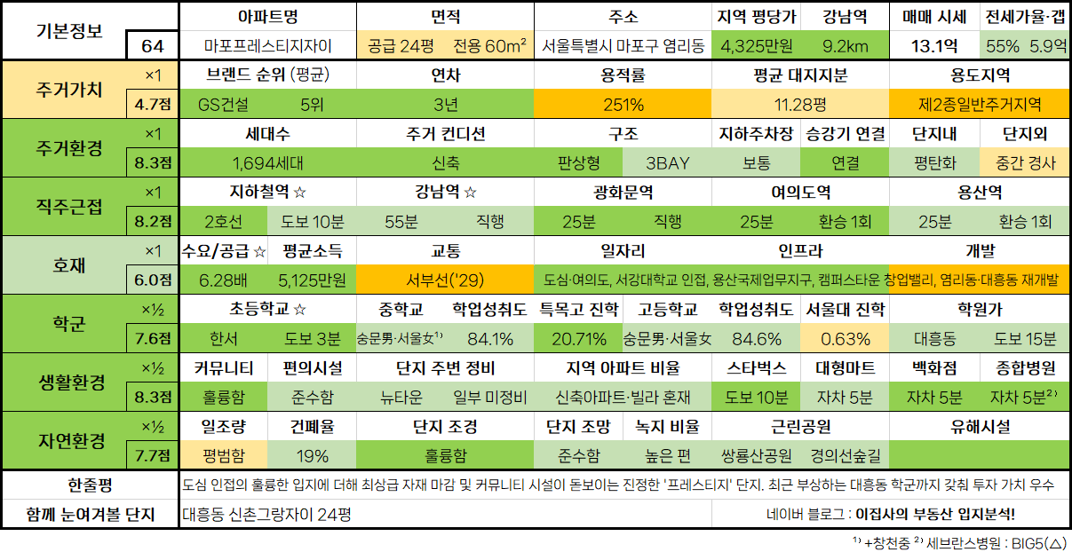 - 함께 눈여겨볼 단지 : 대흥동 신촌그랑자이 24평