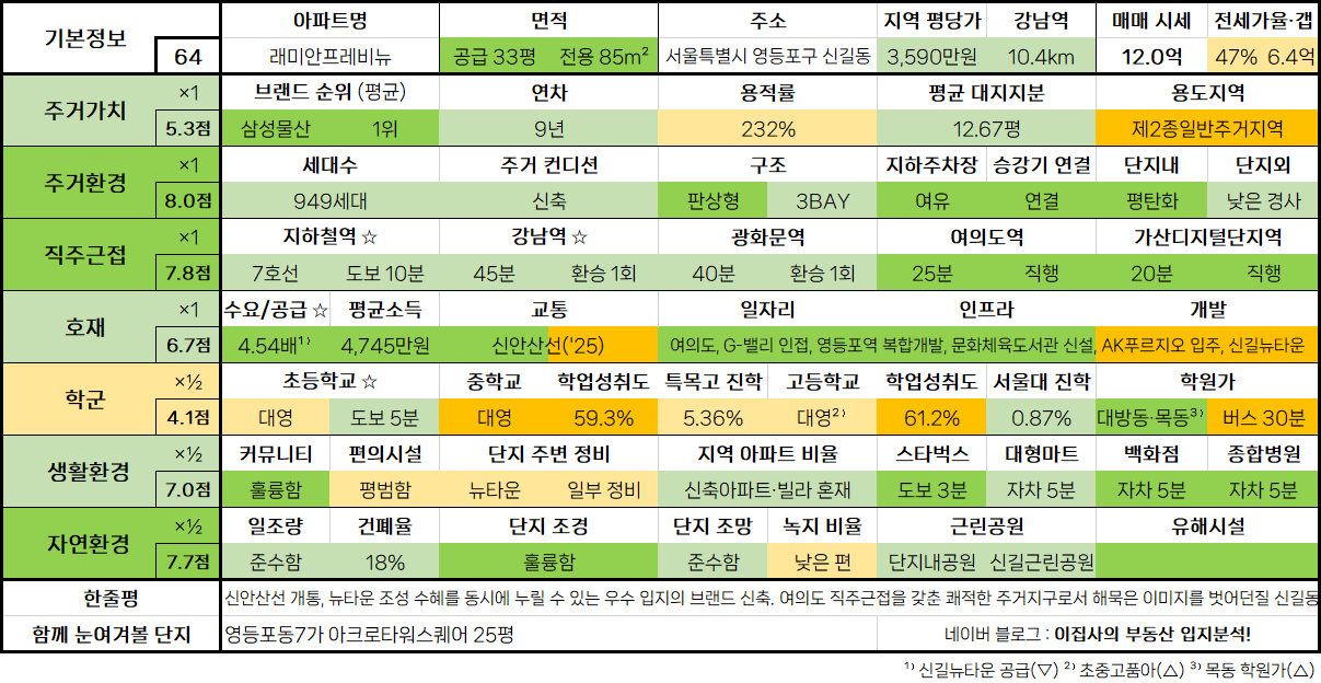 4. 서울특별시 영등포구 신길동 래미안프레비뉴 33평