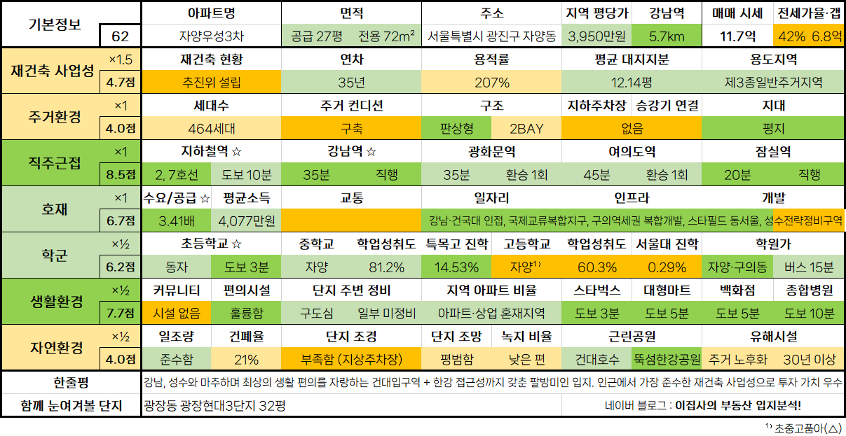 - 함께 눈여겨볼 단지 : 광장동 광장현대3단지 32평