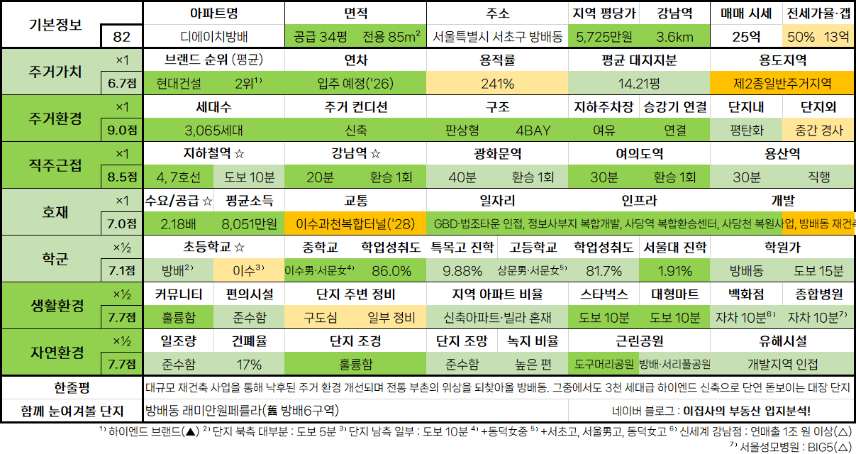 - 대규모 재건축 사업을 통해 낙후된 주거 환경 개선되며 전통 부촌의 위상을 되찾아올 방배동. 그중에서도 3천 세대급 하이엔드 신축으로 단연 돋보이는 대장 단지