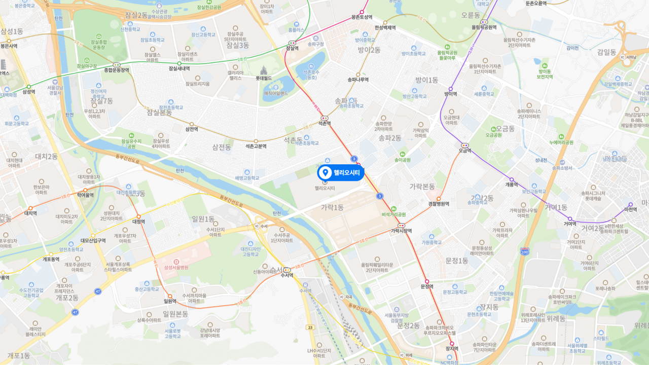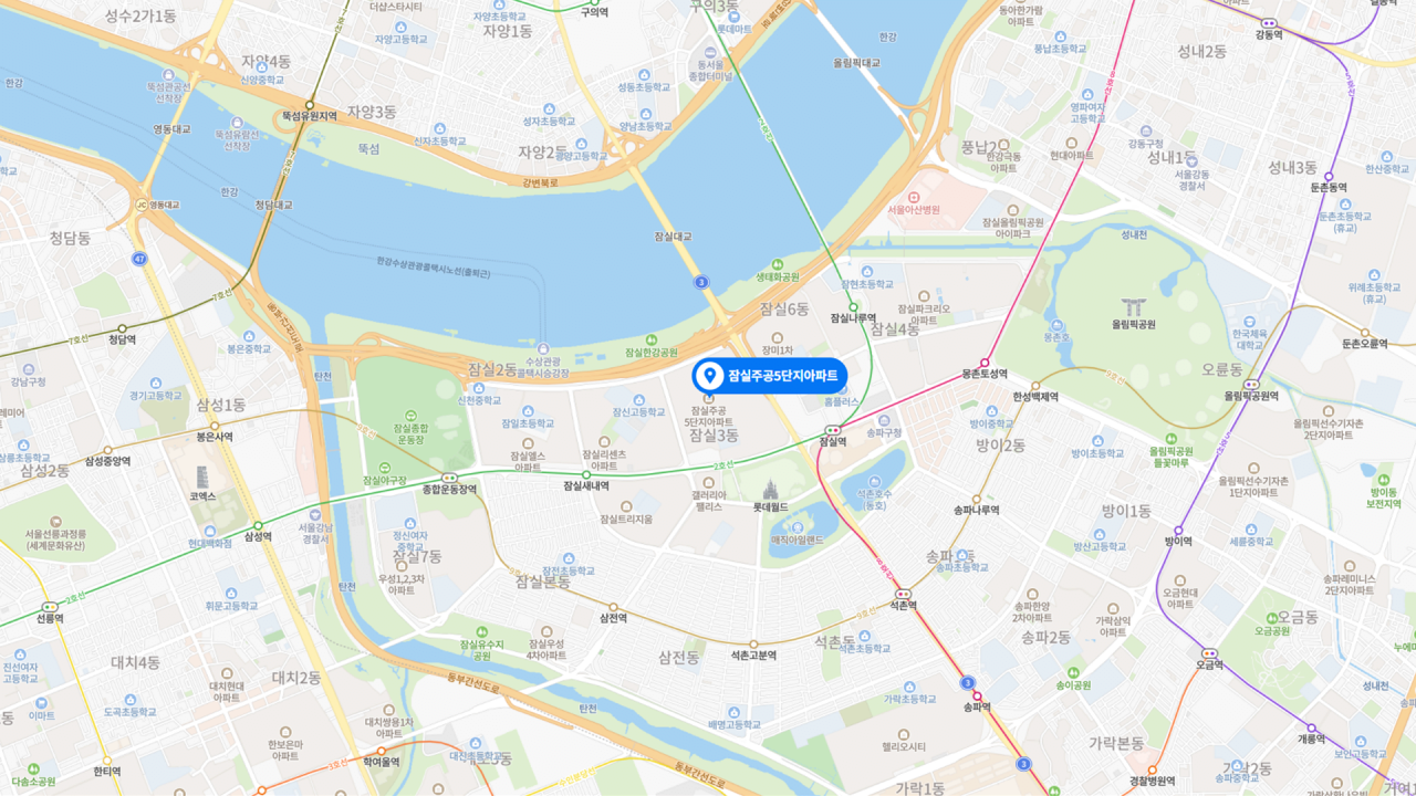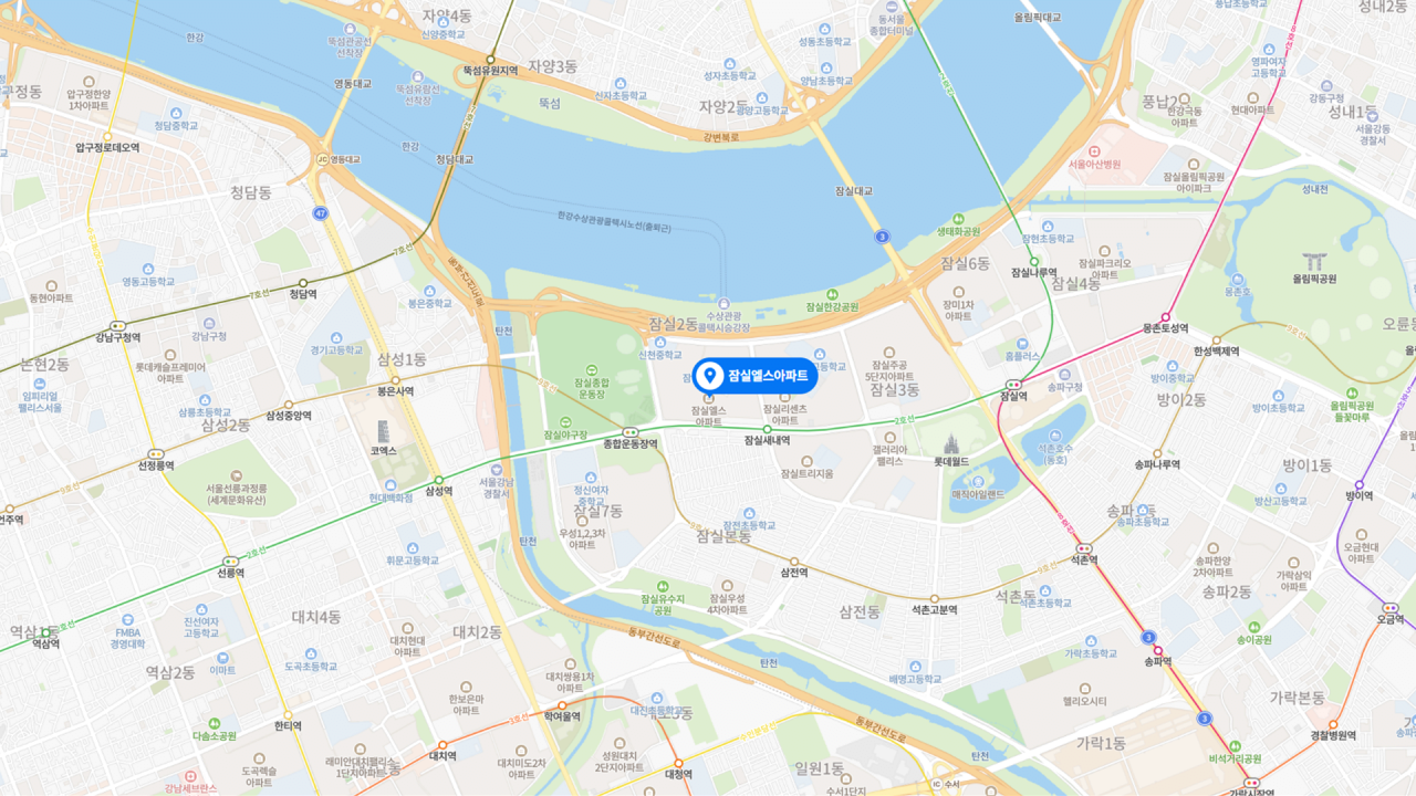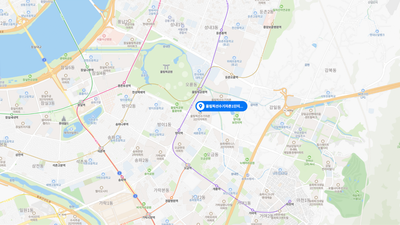 - 한강공원과 초중학교를 품은 평지의 택지지구이자, 코엑스와 종합운동장을 위시한 국제교류복합지구 및 롯데월드 접근성까지 갖춘 주거 인프라의 진정한 끝판왕