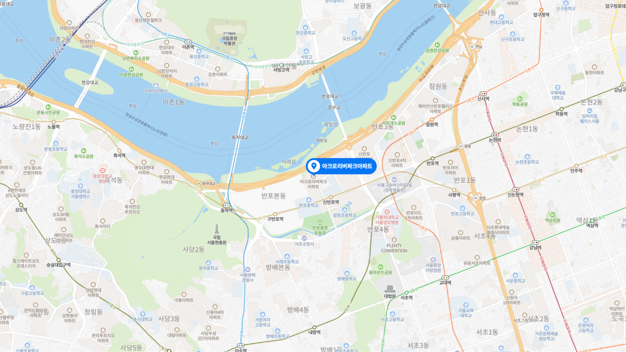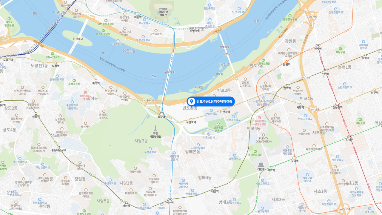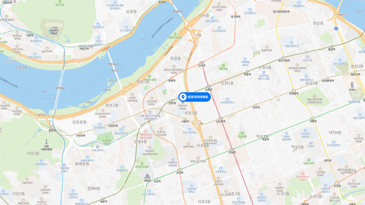 - '반포'와 '자이' 모두를 대표하는 국내 신축 아파트의 상징으로, 교통 핵심지의 번잡한 외부 환경과 대비되는 쾌적한 단지 내부 환경 및 인프라 갖춰 주거의 질 최상