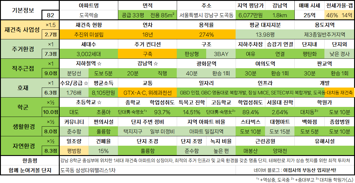 - 함께 눈여겨볼 단지 : 도곡동 삼성타워팰리스1차