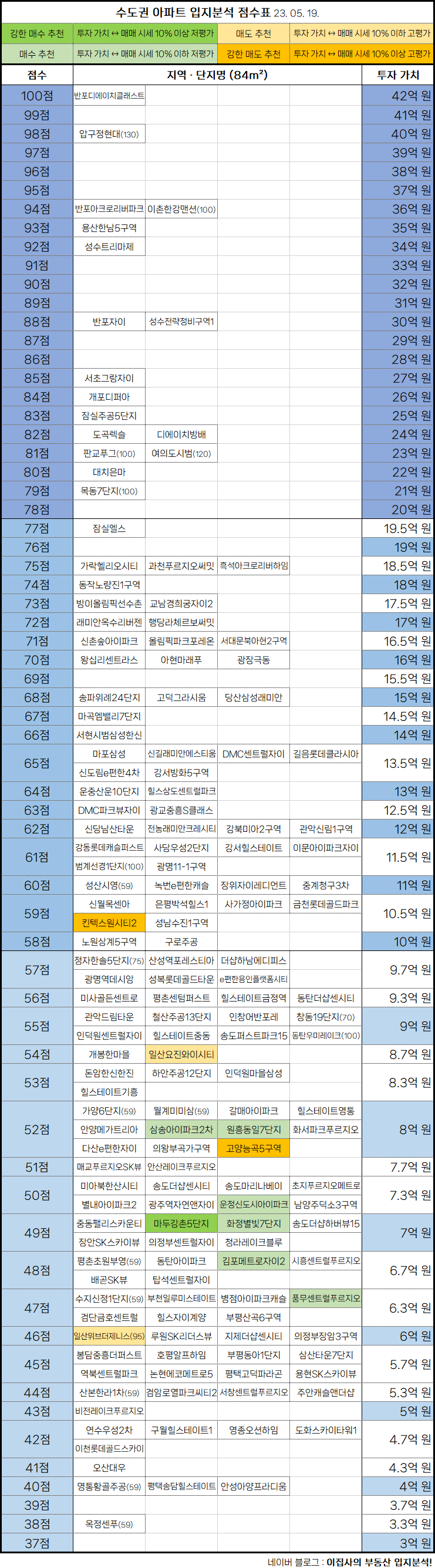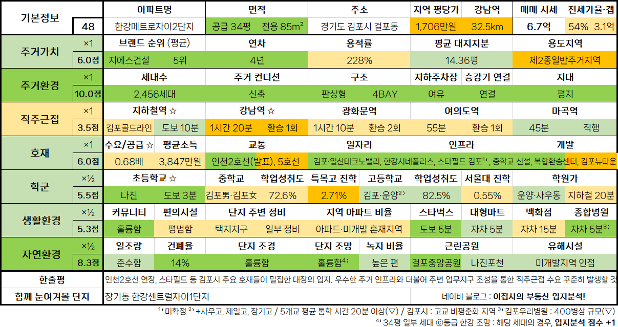 - 수도권 아파트 입지분석 점수표는 매 분기 순차적으로 업데이트됩니다.