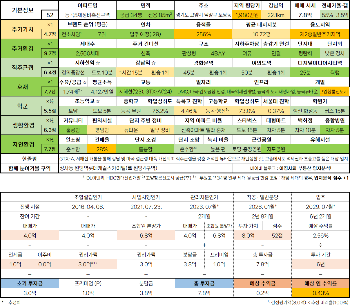 - GTX-A, 서해선 개통을 통해 강남 및 마곡 접근성 대폭 개선되며 직주근접을 갖춘 쾌적한 뉴타운으로 재탄생할 것. 그중에서도 역세권과 초중고를 품은 대장 입지