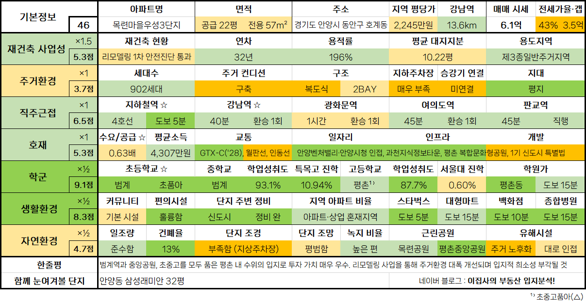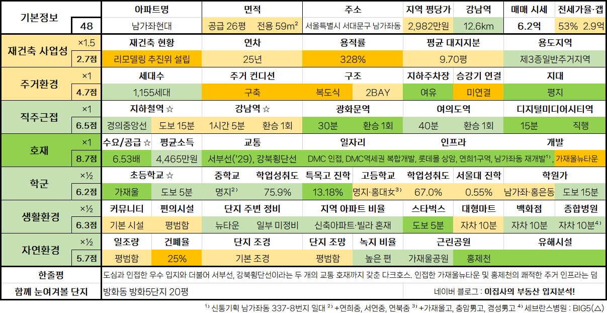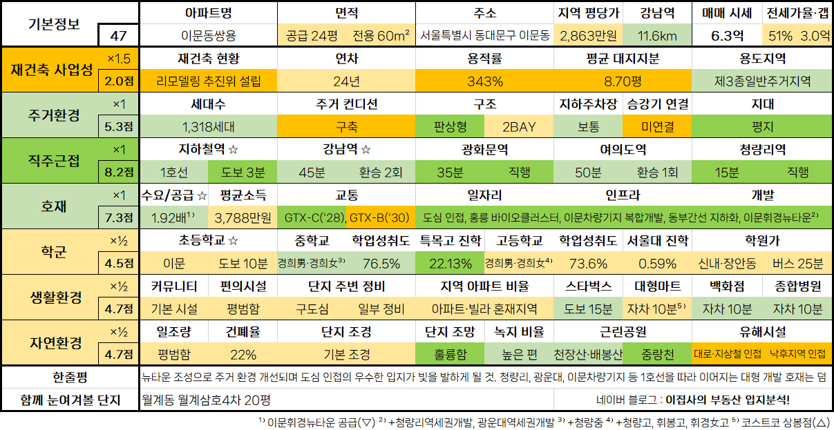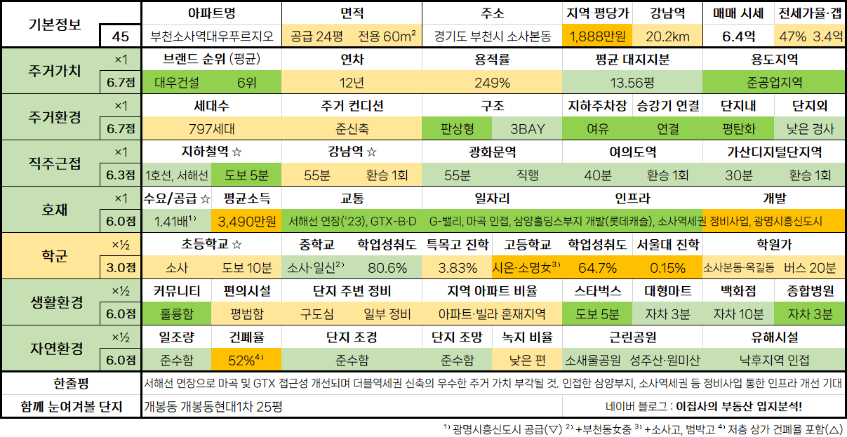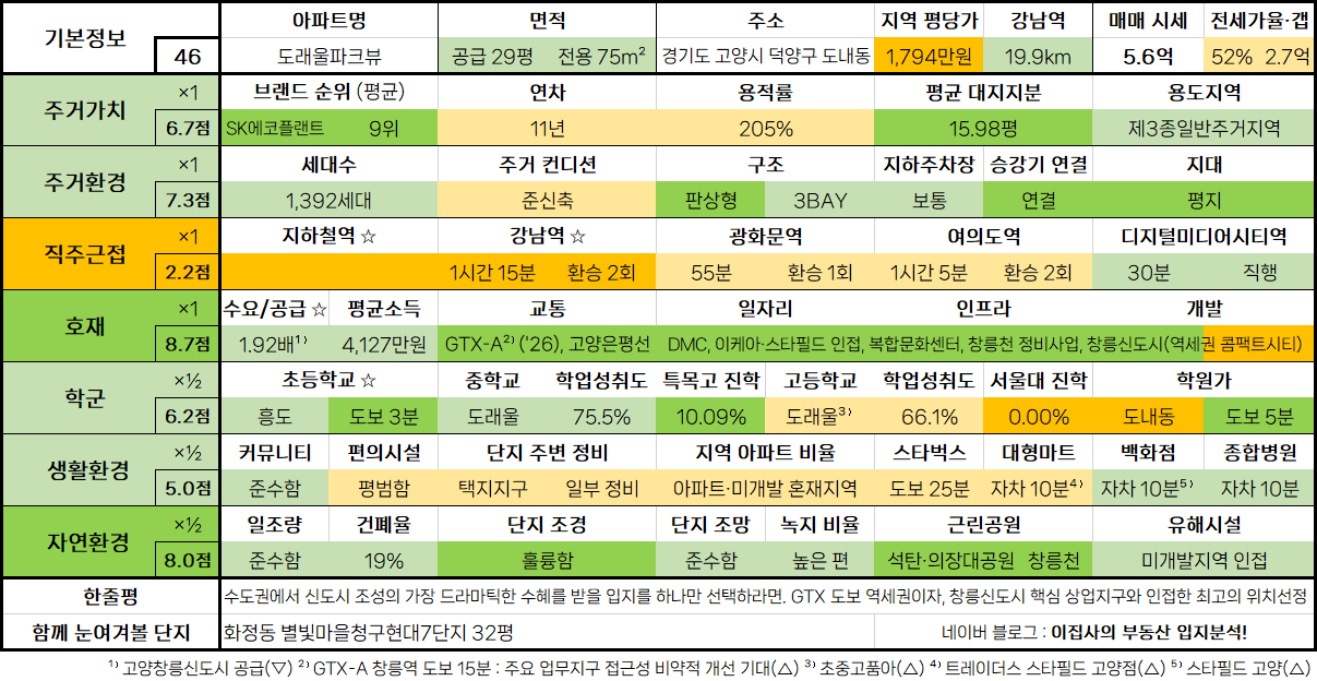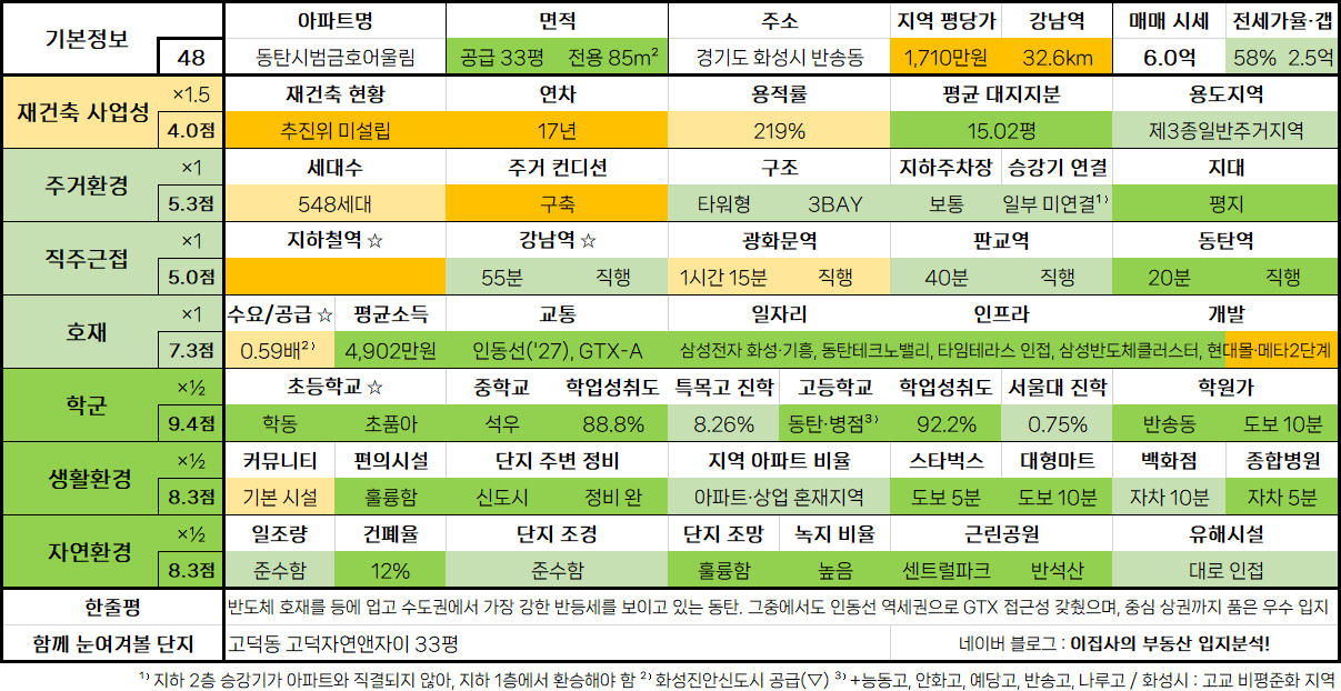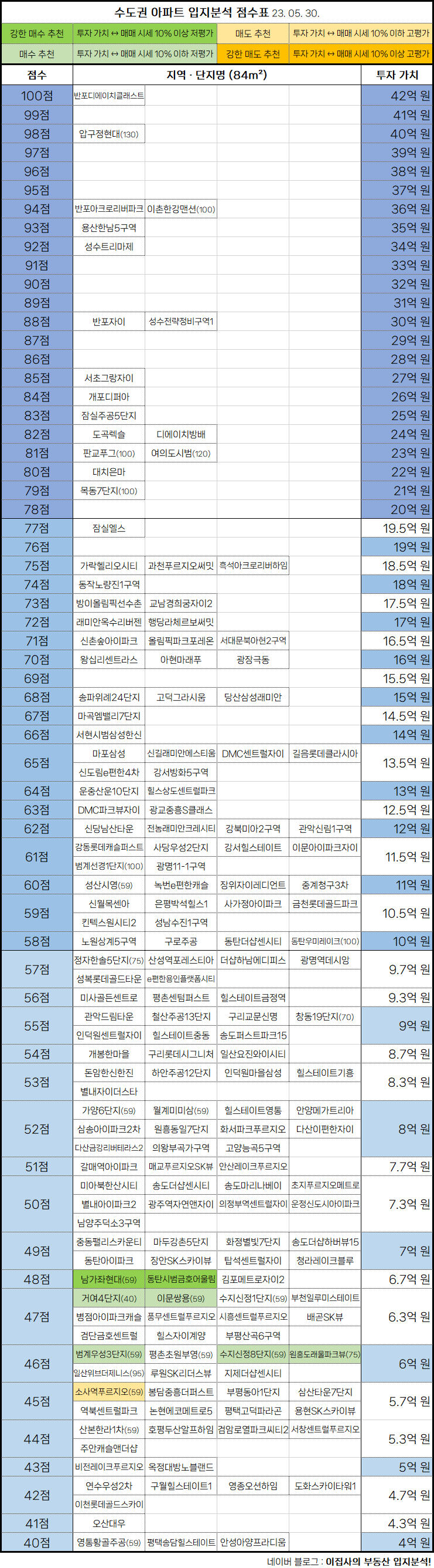 - 수도권 아파트 입지분석 점수표는 매 분기 순차적으로 업데이트됩니다.