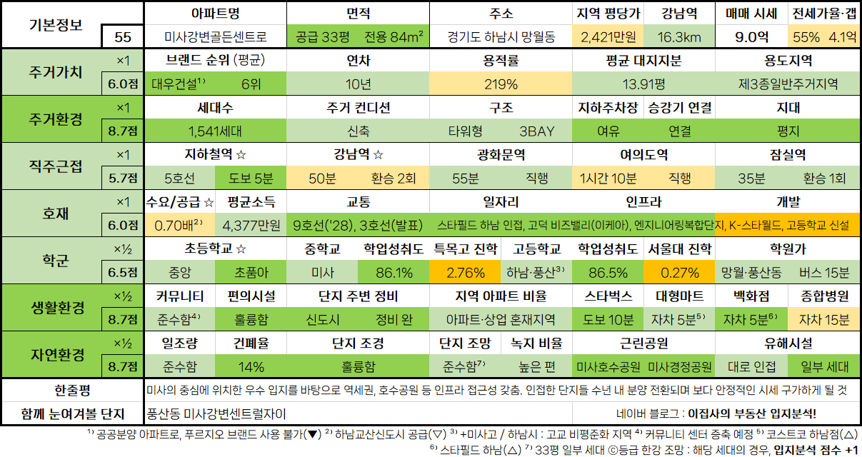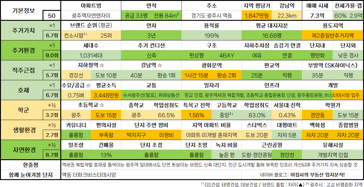 - 수도권 아파트 입지분석 점수표는 매 분기 순차적으로 업데이트됩니다.