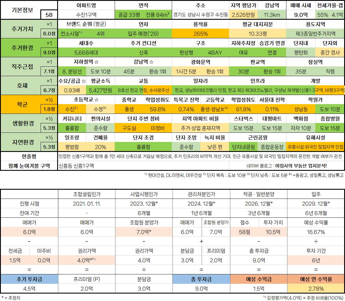 - 인접한 신흥1구역과 함께 총 1만 세대 신축으로 거듭날 예정으로, 주거 인프라의 비약적 개선 기대. 인근 유흥시설 및 외국인 밀집지역의 온전한 개발 여부가 관건